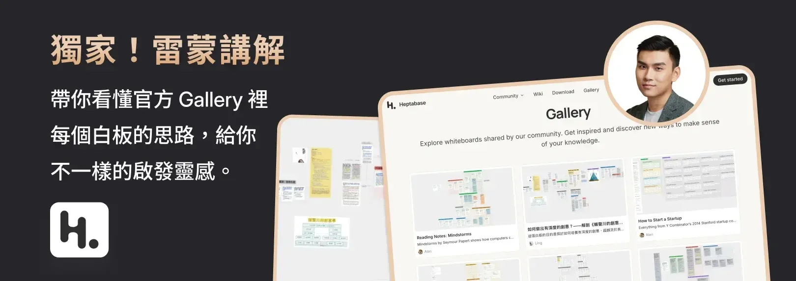 錄影講解 Heptabase 官方的 Gallery 的實際應用案例,給你不一樣的啟發靈感。