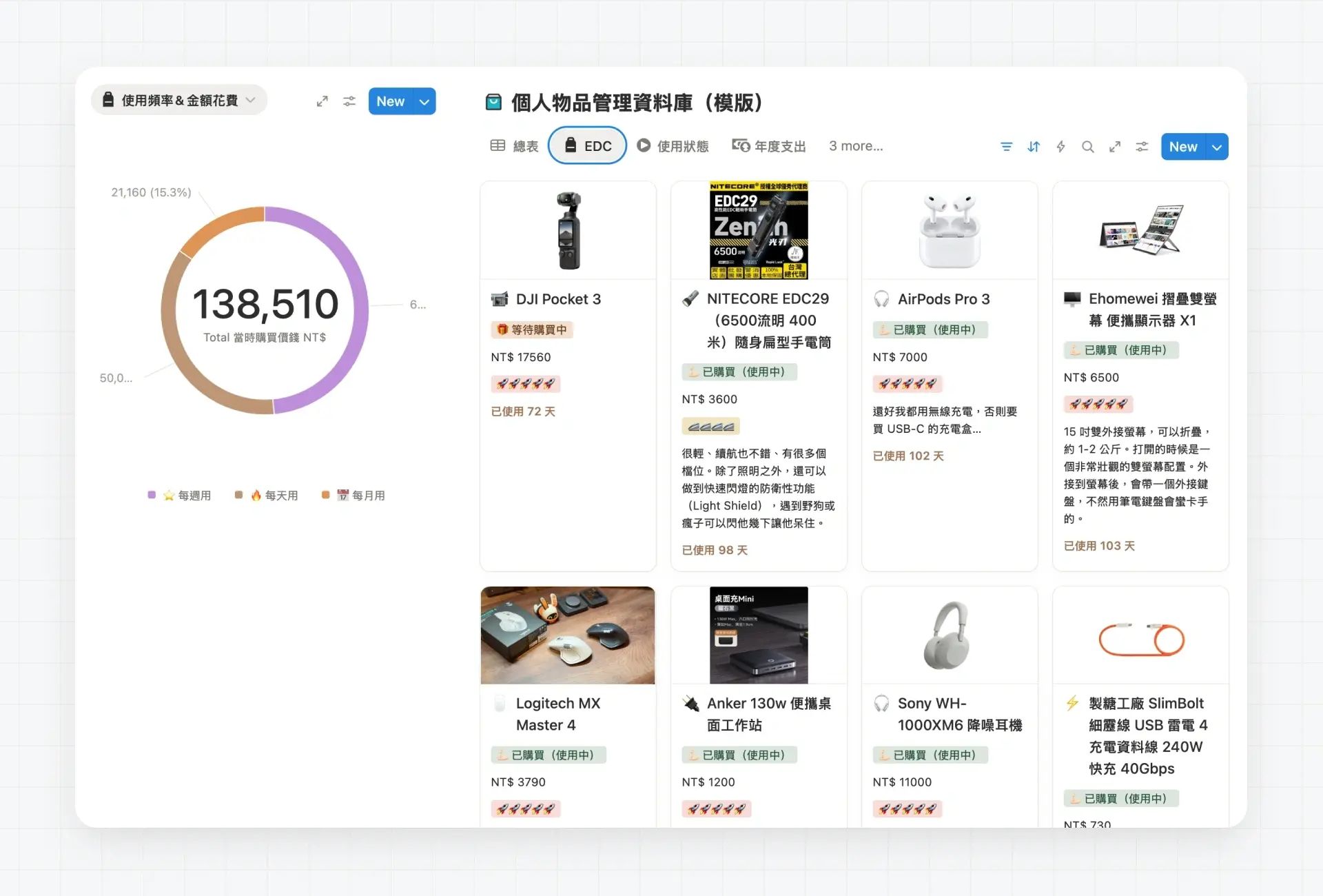 - 讓每次購買都成為「好投資」:追蹤使用頻率與體驗,避免買了一堆「以為需要」卻吃灰的裝備。