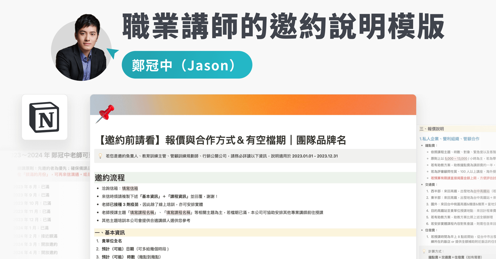 【Notion 模版】職業講師的邀約手冊|鄭冠中