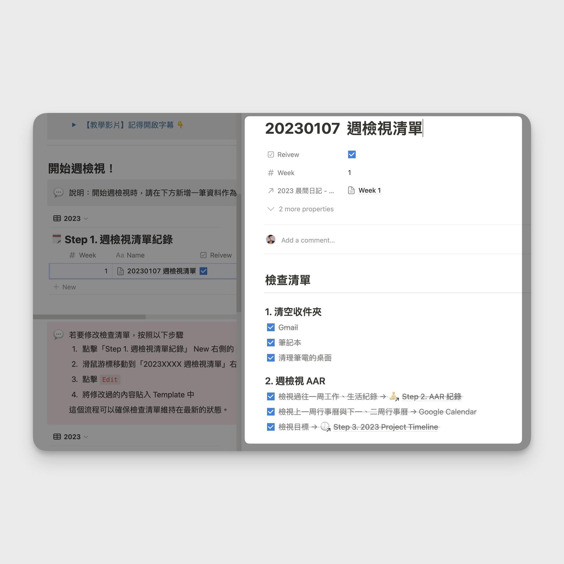 - Step 1:週檢視清單,掌握每週生活節奏。