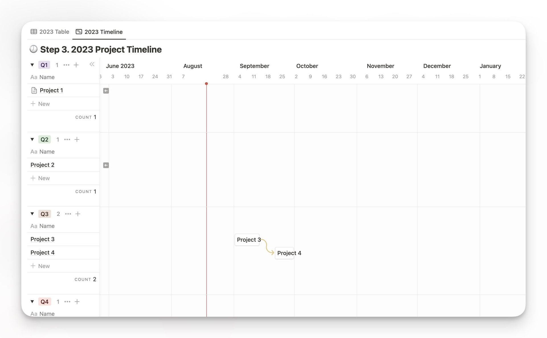 - Step 3:Project Timeline 檢視,追蹤長期目標和重要專案,重新梳理優先事項,讓重要的任務不再拖延,打造有意義的生活和事業。