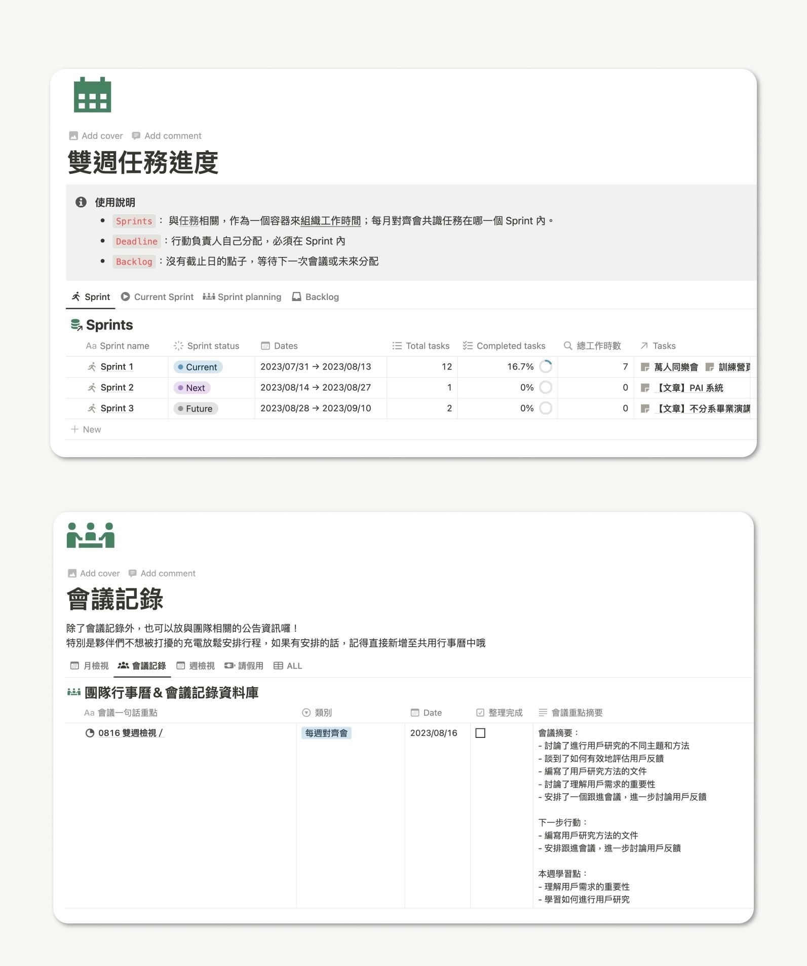 - 此模版為我們遠距團隊的真實運用系統,不是為了打造模版而製作的空虛系統!
