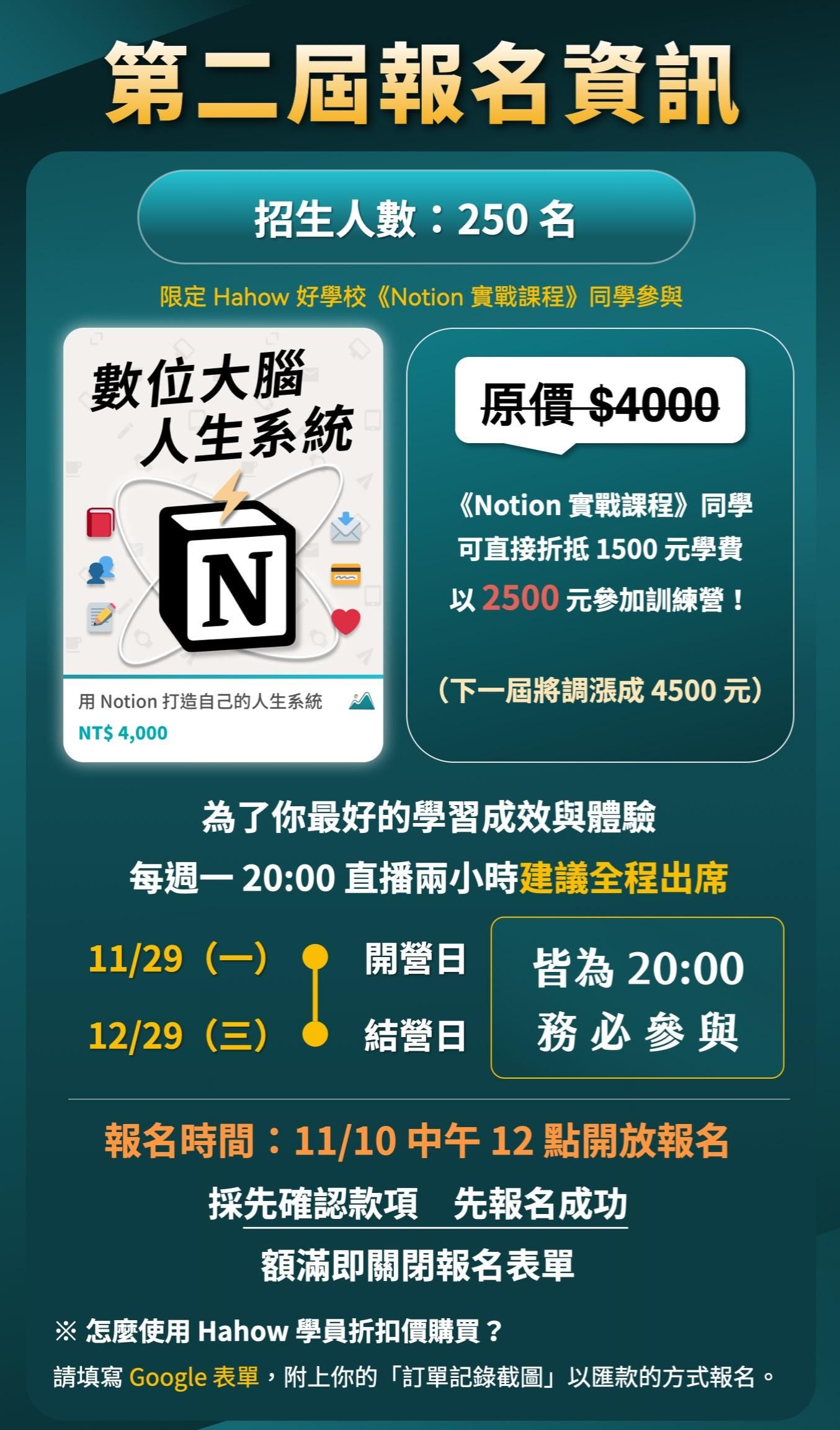 第二屆 Notion 線上訓練營依然【限定 Hahow 課程同學】參與喔!