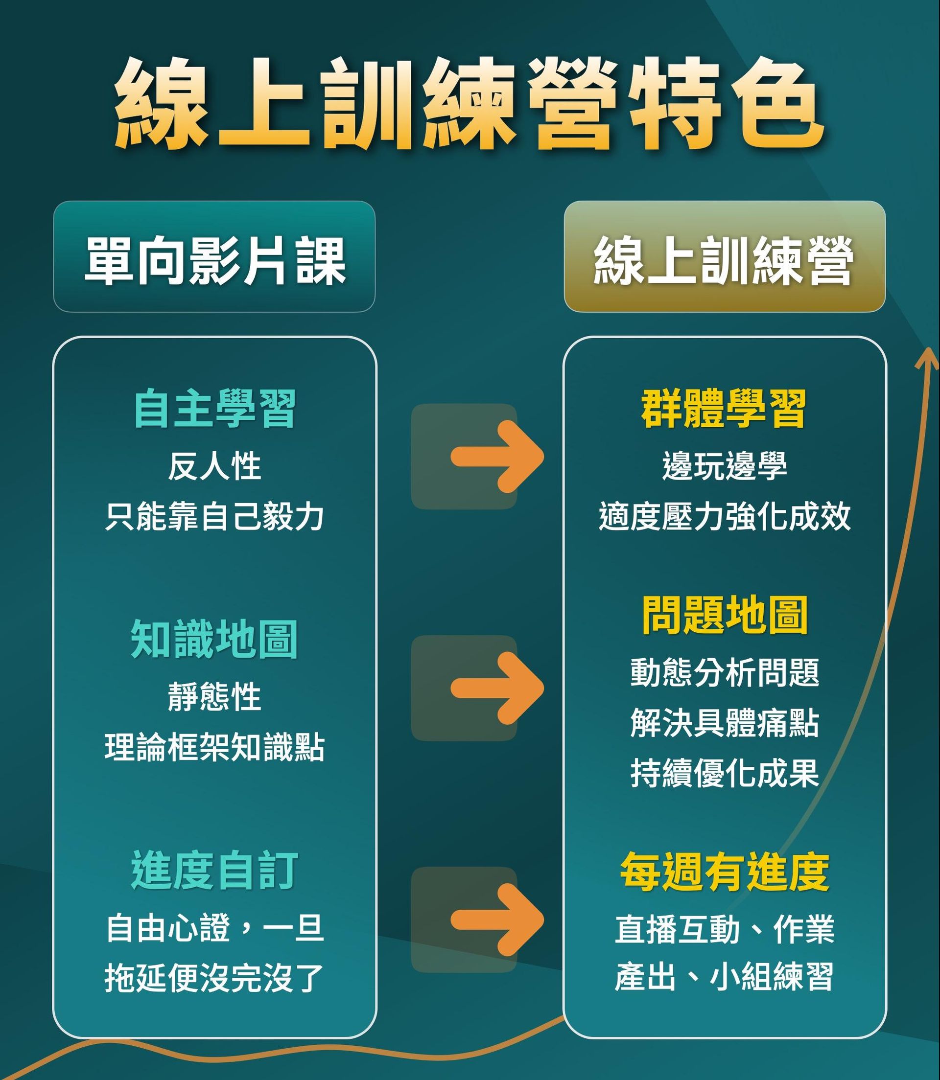 「直播回放影片」會在直播課後 24 小時內上傳到此平台,可以調整播放速度 + 無限回看到訓練營結營後 30 天。雖然如此,還是強烈建議一定要來參與直播,能夠群體學習與即時互動問答,這跟事後自行看影片學習的成效差異很大的。 - 課程內容的有效期是多久?