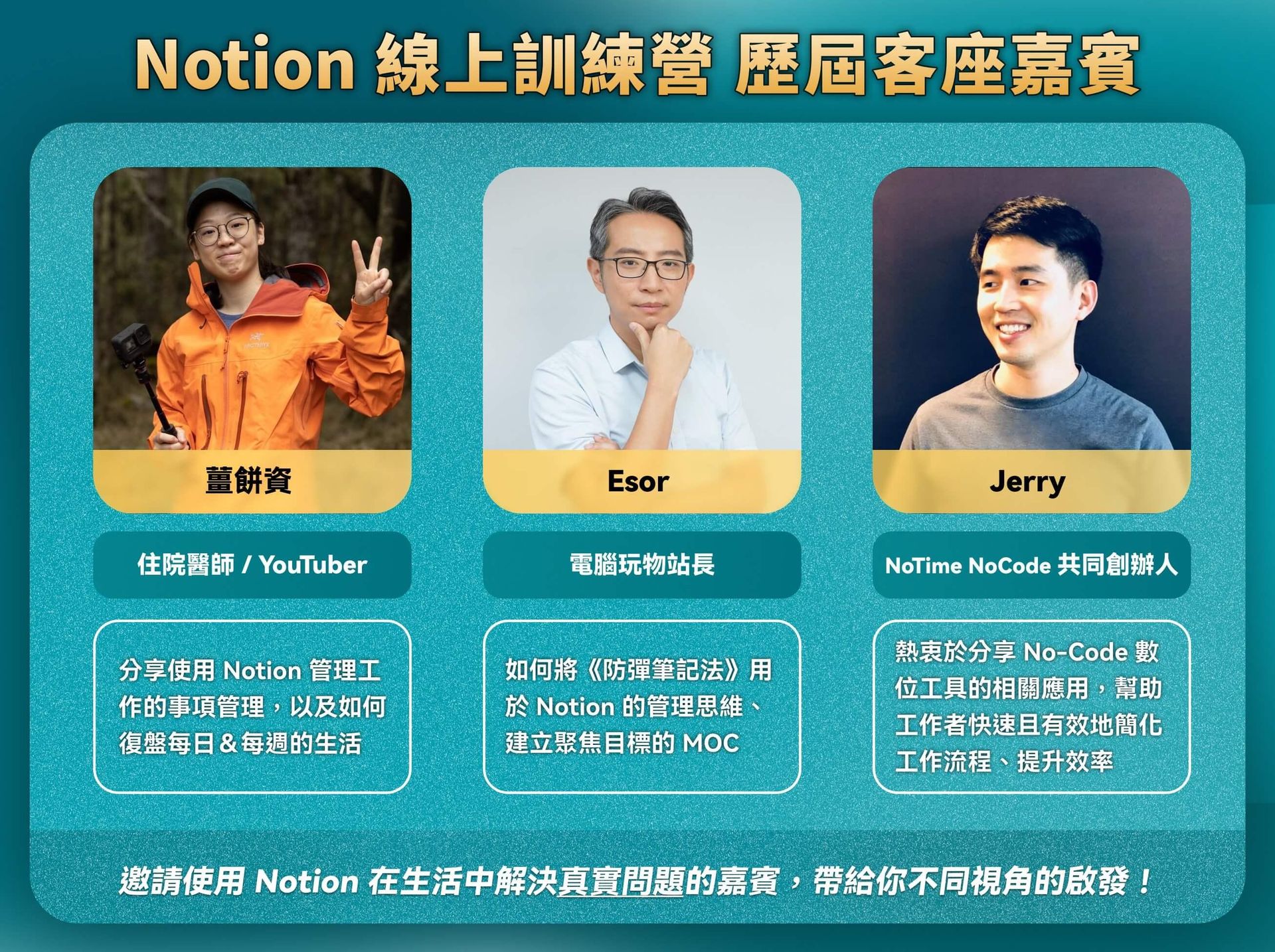 ※ 如果你有以上問題,Notion 線上訓練營將能協助你解決,並快速有效地達到你的目標!