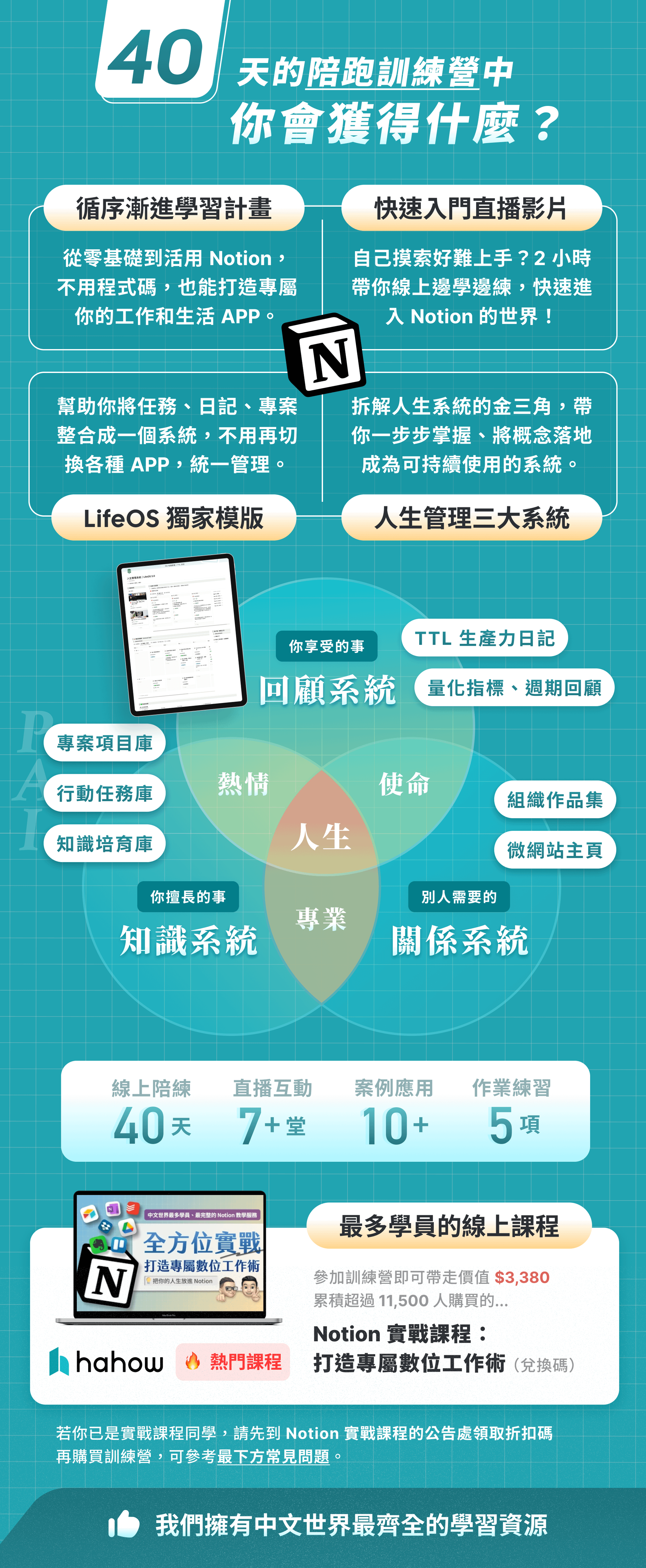 💡 現在參與,不僅加入下一屆訓練營和高品質終身學習社群,還包含中文世界最完整的 Notion 線上影片課程 - 永久回看。