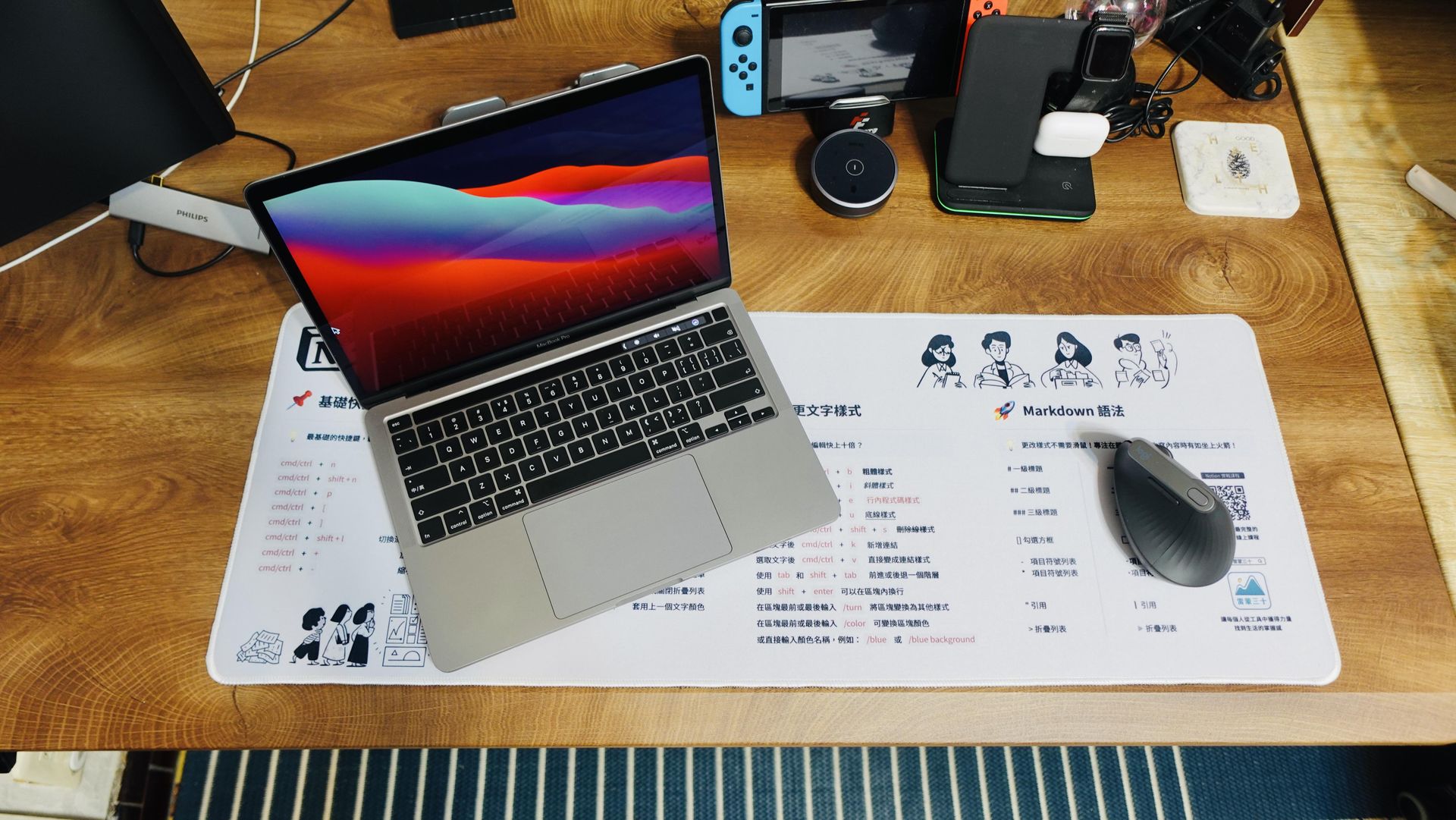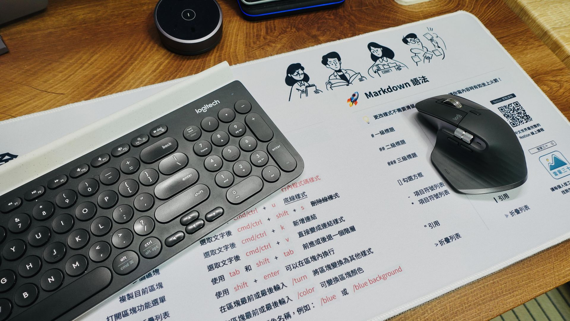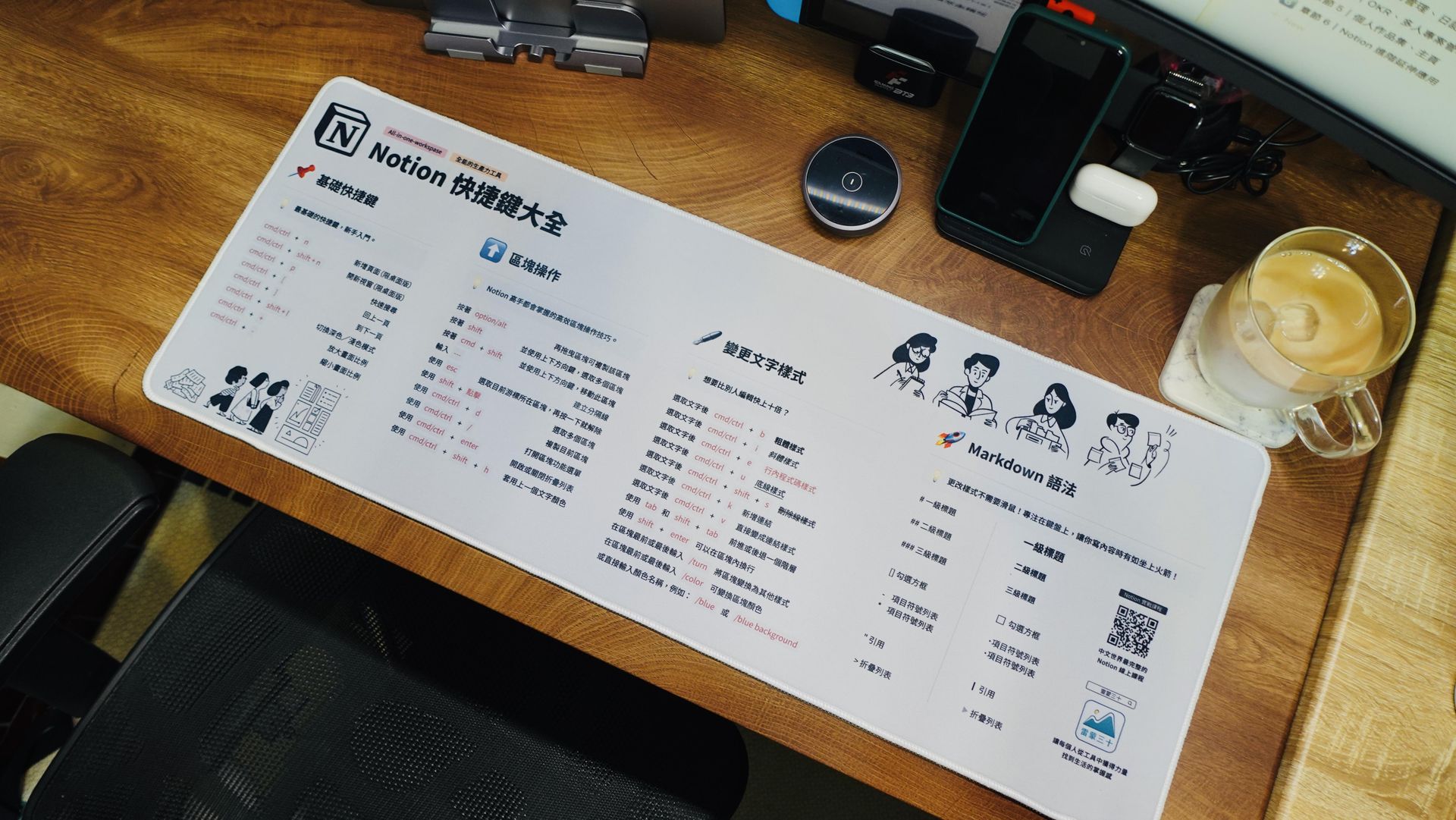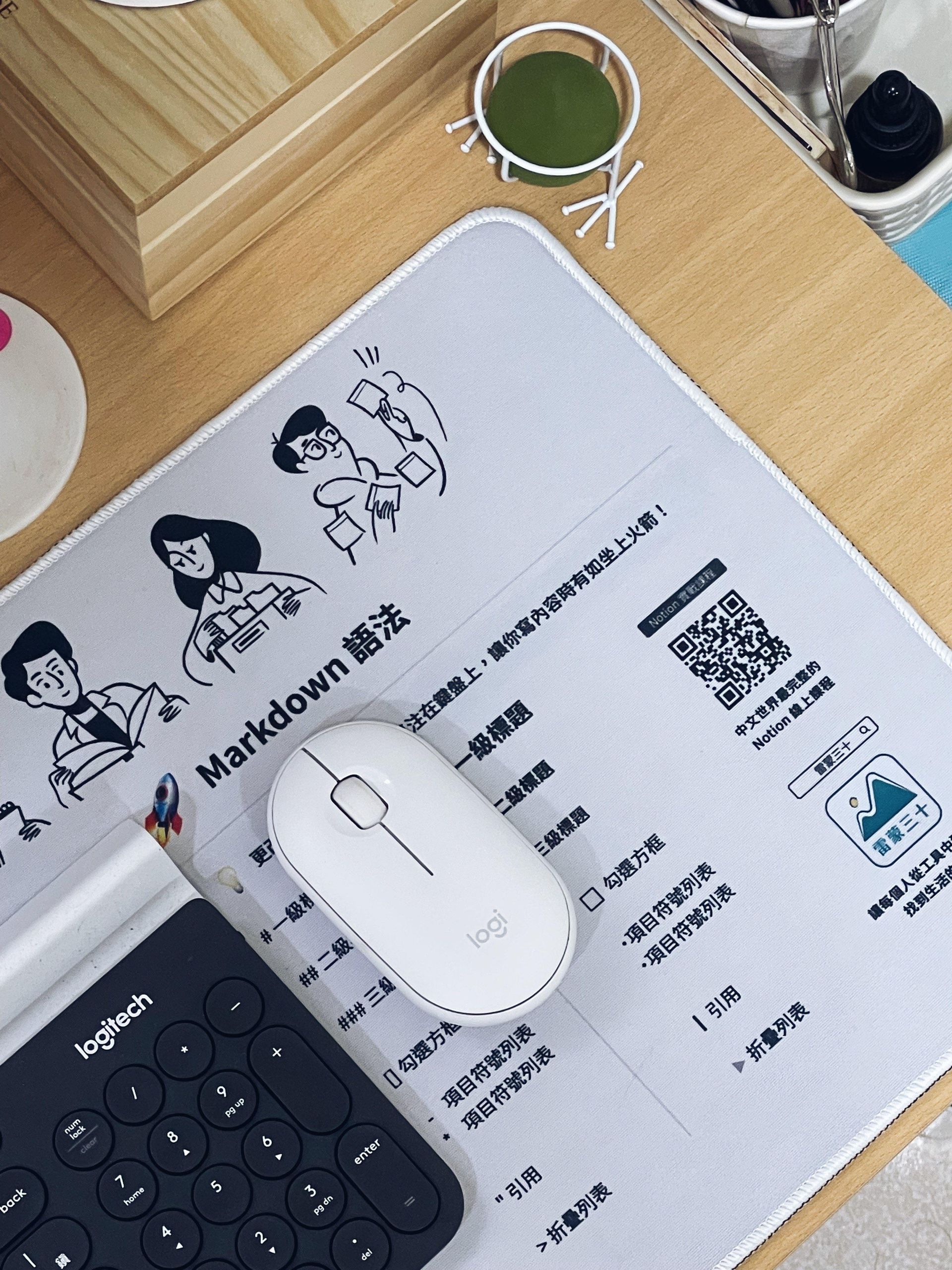 Notion 風格設計的桌墊,寬度達 80 公分,讓鍵盤和滑鼠都被照顧到。 🙌🏻