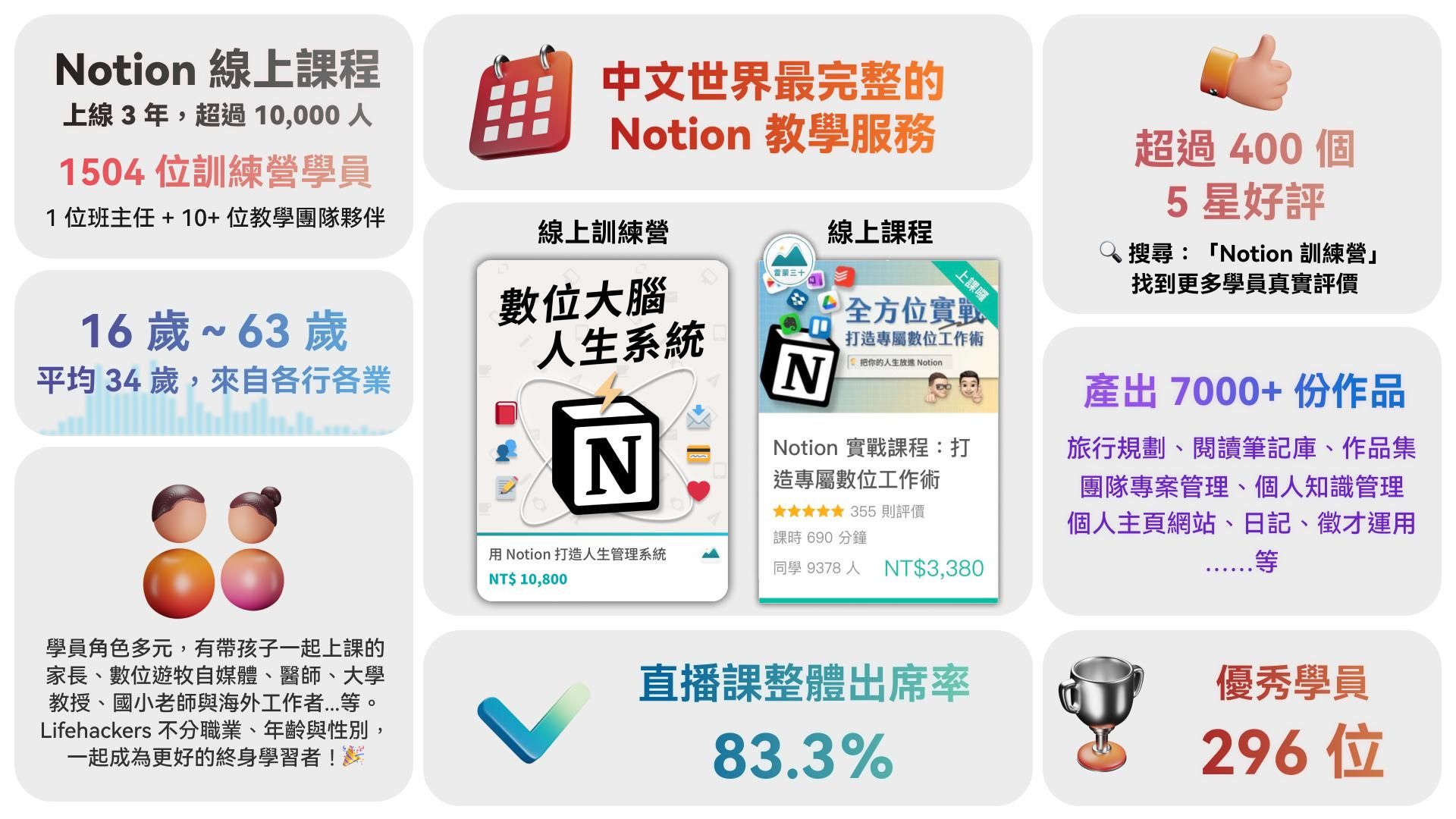- 網路上 Notion 教學雜亂,無法系統化的學習,常常遇到問題卡住