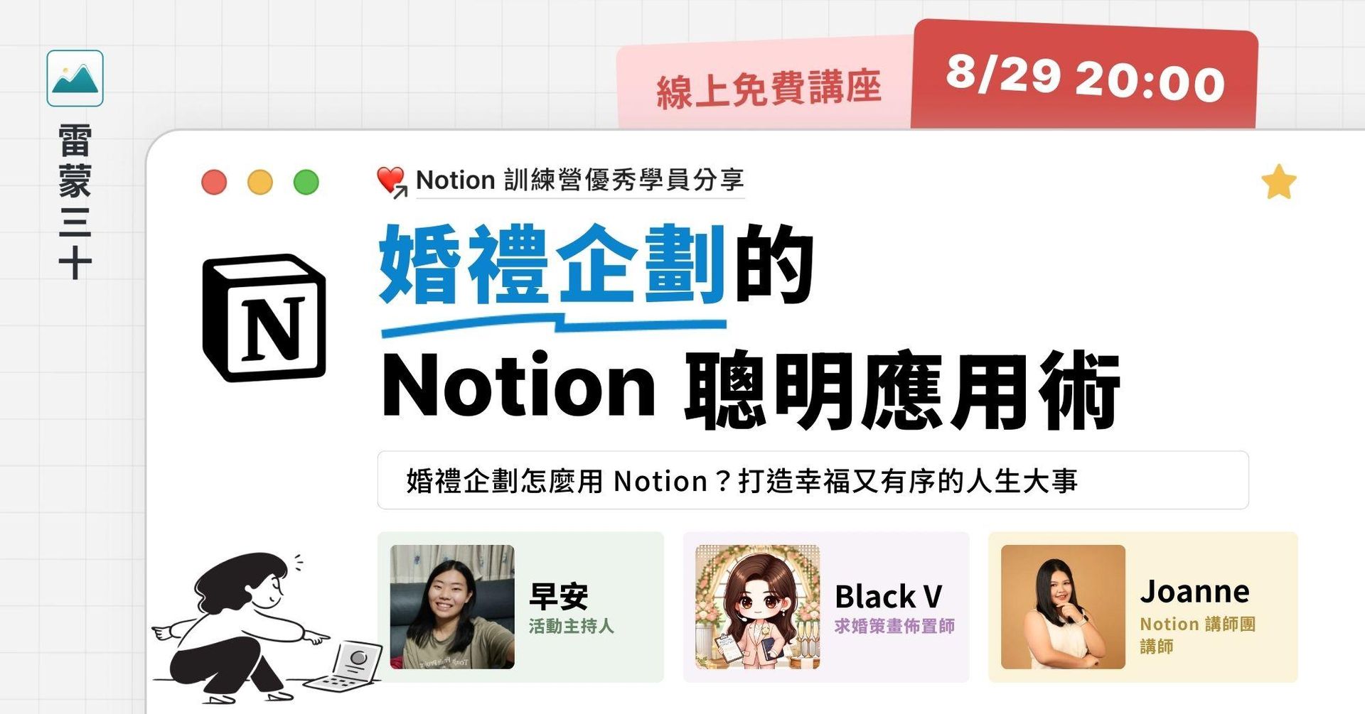 怎麼讓婚禮企劃變得簡單又用心?這場直播將揭開婚禮規劃者如何應用 Notion 打造系統的祕密!