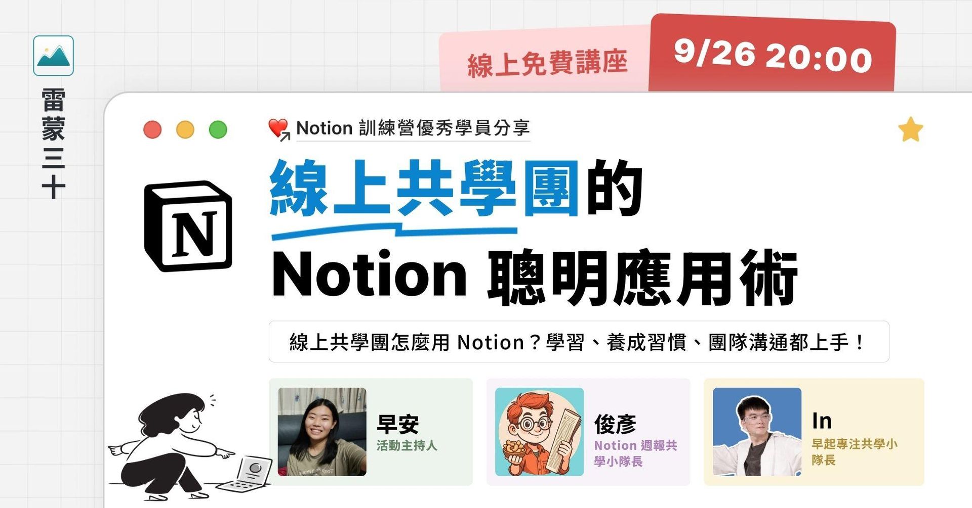 怎麼讓線上共學變得有趣又方便?這場直播將揭開線上共學團的經營者如何應用 Notion 打造系統的祕密!