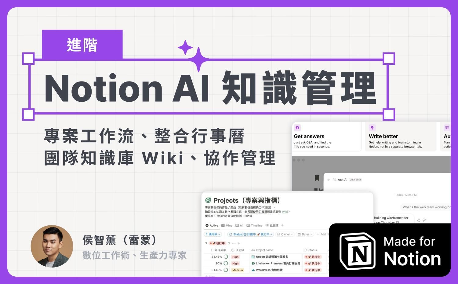 如果你已經開始使用 Notion,並希望掌握最新的功能與一些進階功能的應用,那麼可以參加進階的 Notion AI 專案管理工作流課程。