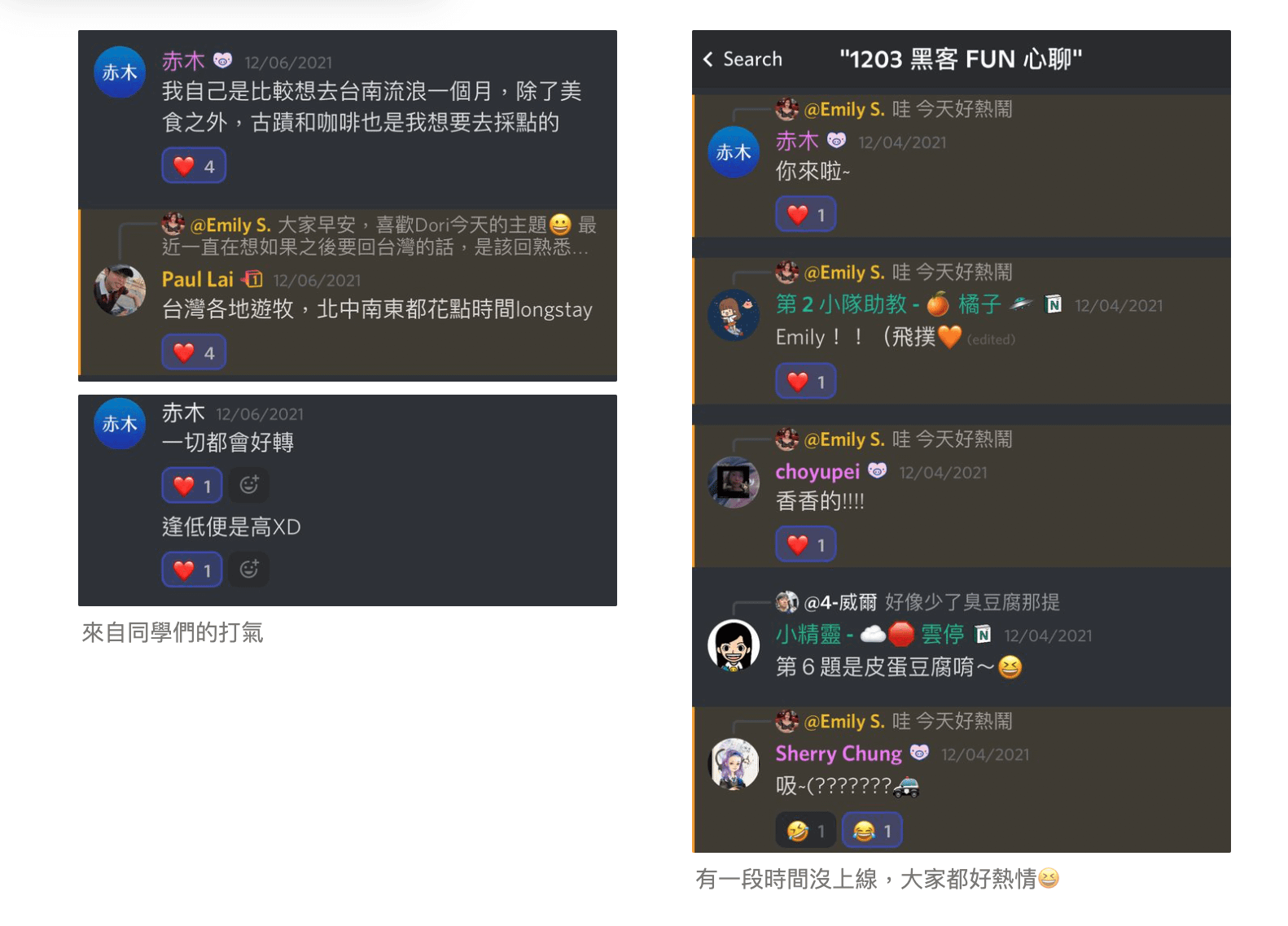 那時候我在工作上還是個團隊的管理者,每天工作都很忙碌,有不同的專案在進行中,而每天下班回家打開訓練營的群組對話,又會被嚇到一次,訊息也太多了吧!後來才發現,大家除了學習 Notion 外,也會彼此交流生活上不同的話題,而這正是這個群體最棒的地方,大家因為 Notion 聚在一起,話題卻不僅限於 Notion。
