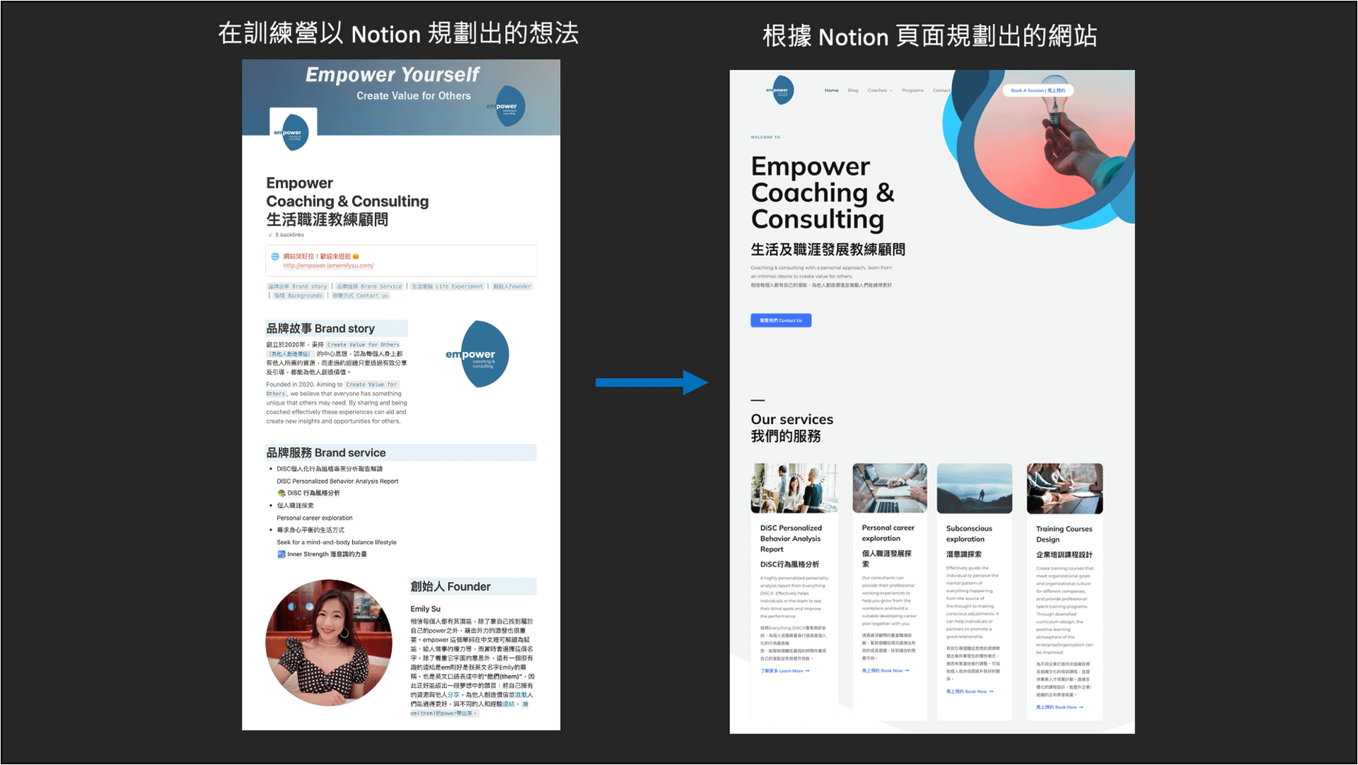 - ✅ 完成 Empower 生活及職涯教練服務網站的雛形