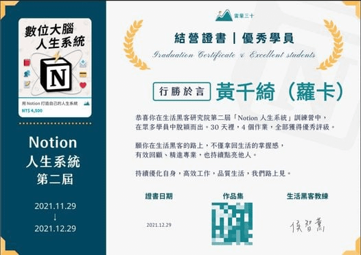 但也因為有這個明確的目標,讓我在整個營期中沒有缺席任何一個課程 or 活動,Notion 能力急速上升,甚至跟學長姐交流收穫很多很棒思路,現在,開需求給我讓我做出一個 Notion 模板已經沒什麼問題了!這些,如果當初我只是沾沾醬油的過完這一個月,是絕對不會做到的。